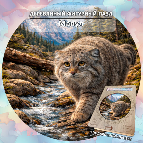Деревянный пазл «Манул» коллекции «Мир животных» / 30х30см, 216 деталей