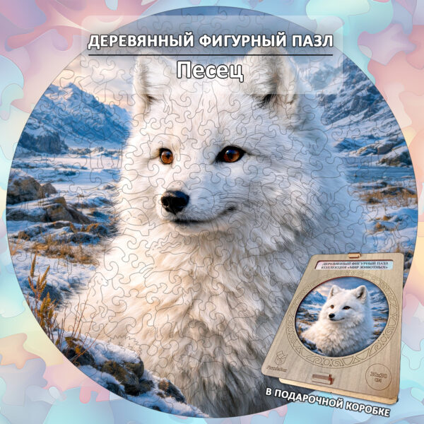 Деревянный пазл «Песец» коллекции «Мир животных» / 30х30см, 216 деталей