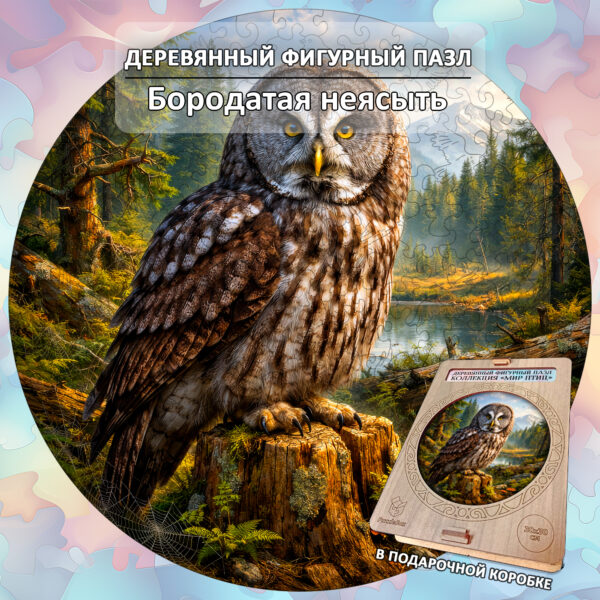 Деревянный пазл «Бородатая неясыть», 30х30см, 223 детали