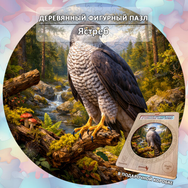 Деревянный пазл «Ястреб», 30х30см, 223 детали