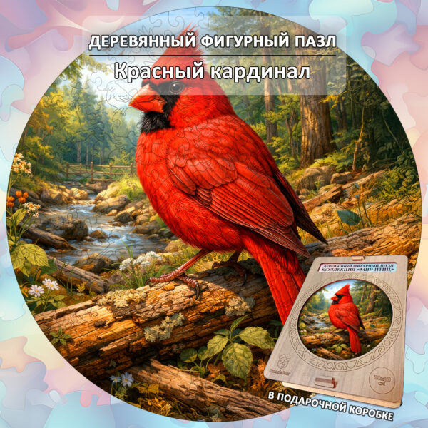 Деревянный пазл «Красный кардинал», 30х30см, 223 детали