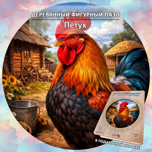 Деревянный пазл «Петух», 30х30см, 223 детали