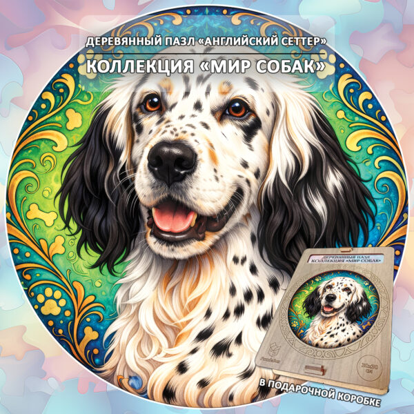 Деревянный пазл Английский сеттер, Мир собак / 30х30см