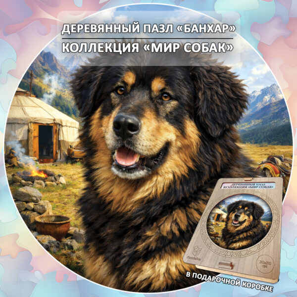 Деревянный пазл Монгольская овчарка Банхар, Мир собак / 30х30см