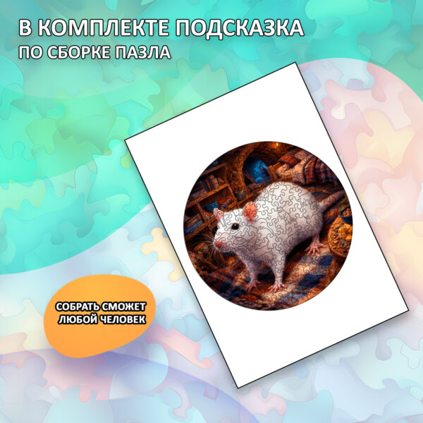 Деревянный пазл «Крыса» коллекции «Мир животных» / 30х30см, 216 деталей