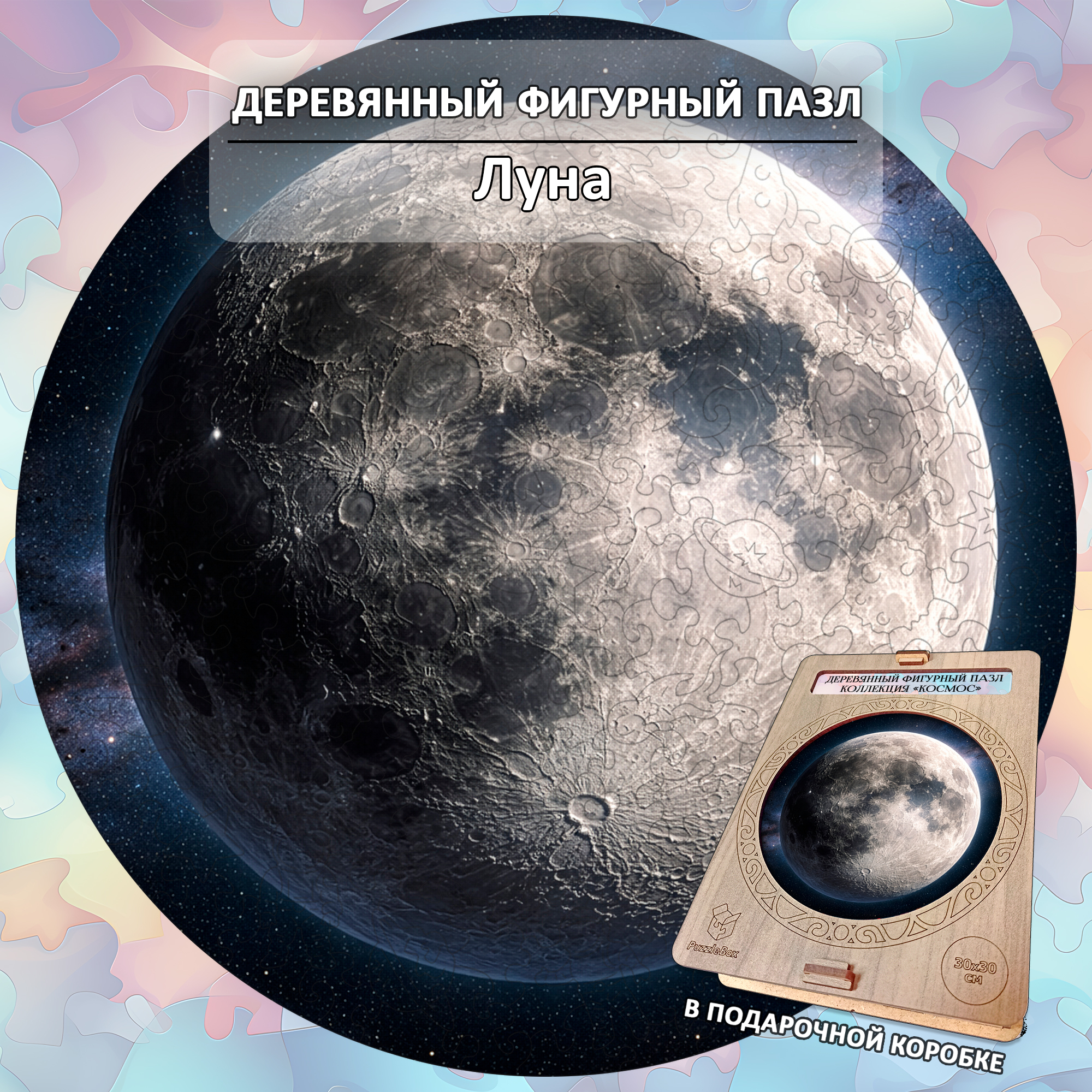 Деревянный пазл «Луна» — это не просто сборка, а настоящее путешествие в космос, где каждая деталь приближает вас к загадочному спутнику Земли. Детализированное изображение Луны с кратерами и текстурой поверхности делает процесс сборки особенно увлекательным и медитативным.