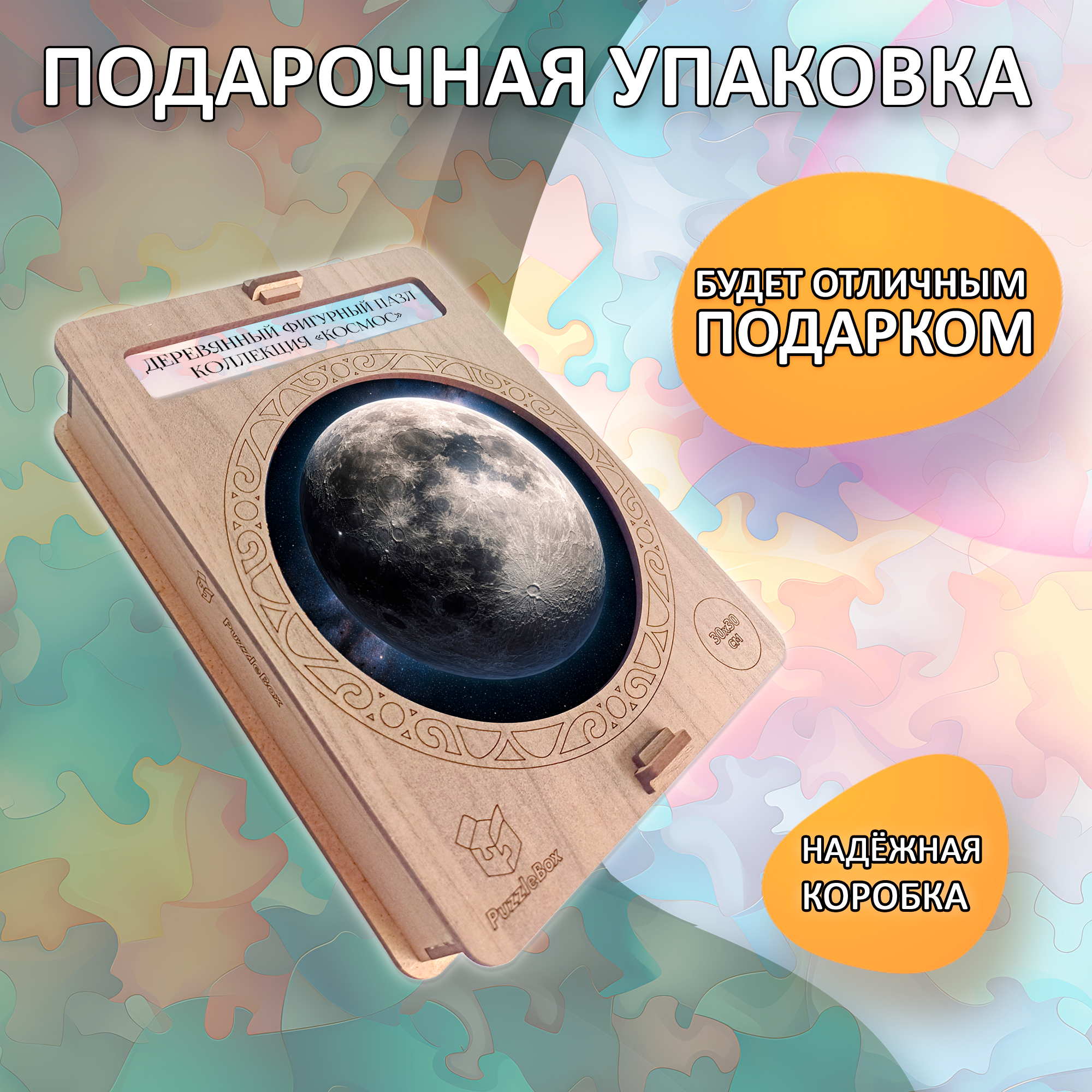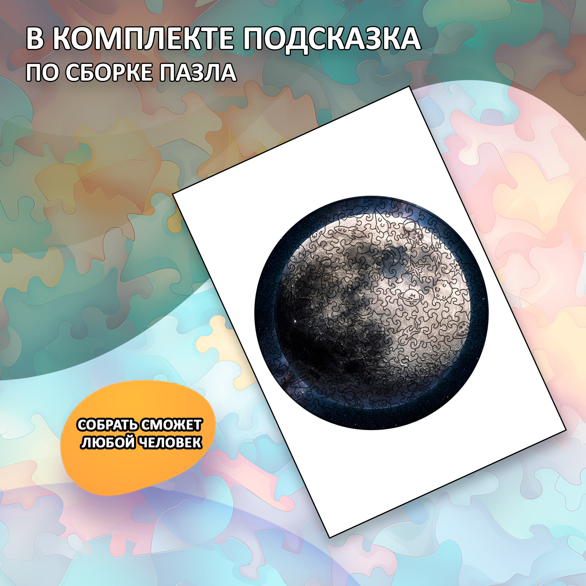 В комплекте есть подсказка по сборке, которая поможет, если захочется немного упростить процесс. Такой деревянный пазл «Луна» — универсальный подарок на день космонавтики, день рождения или просто как знак внимания человеку, который любит космос, необычные вещи и атмосферные изображения.