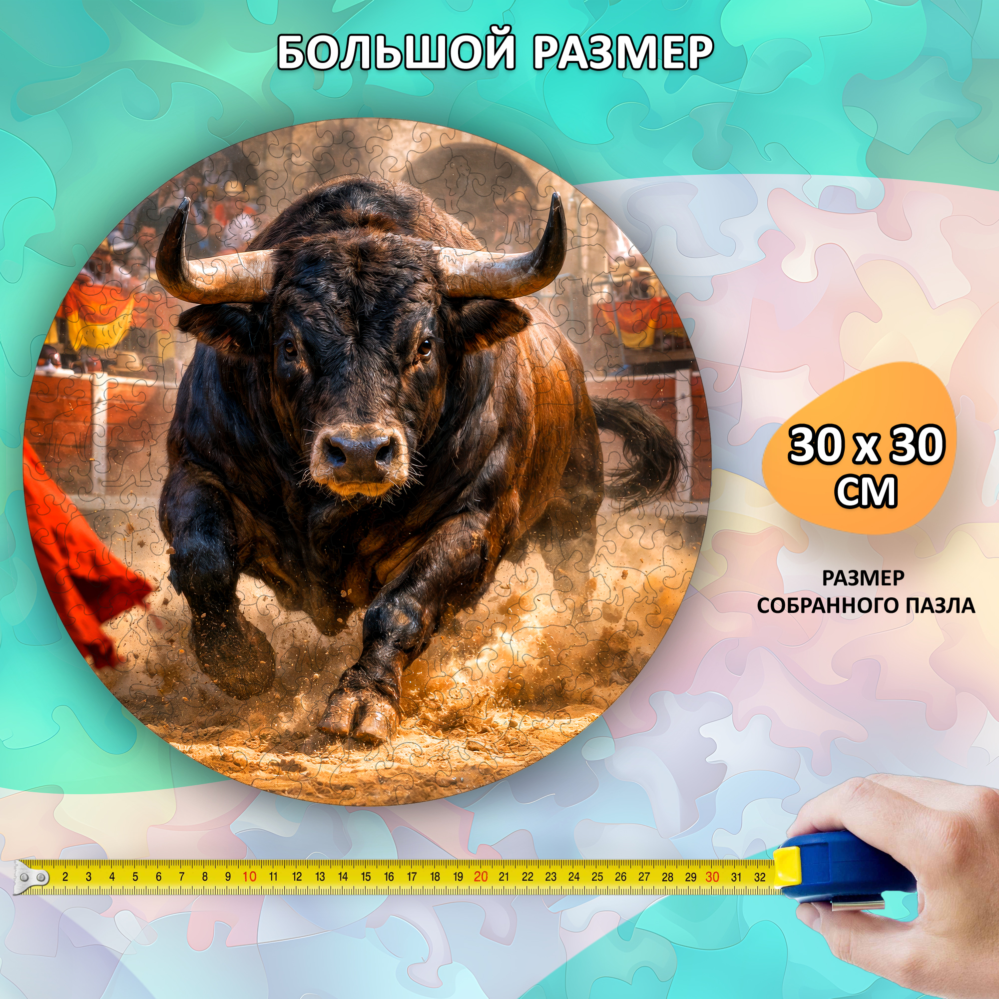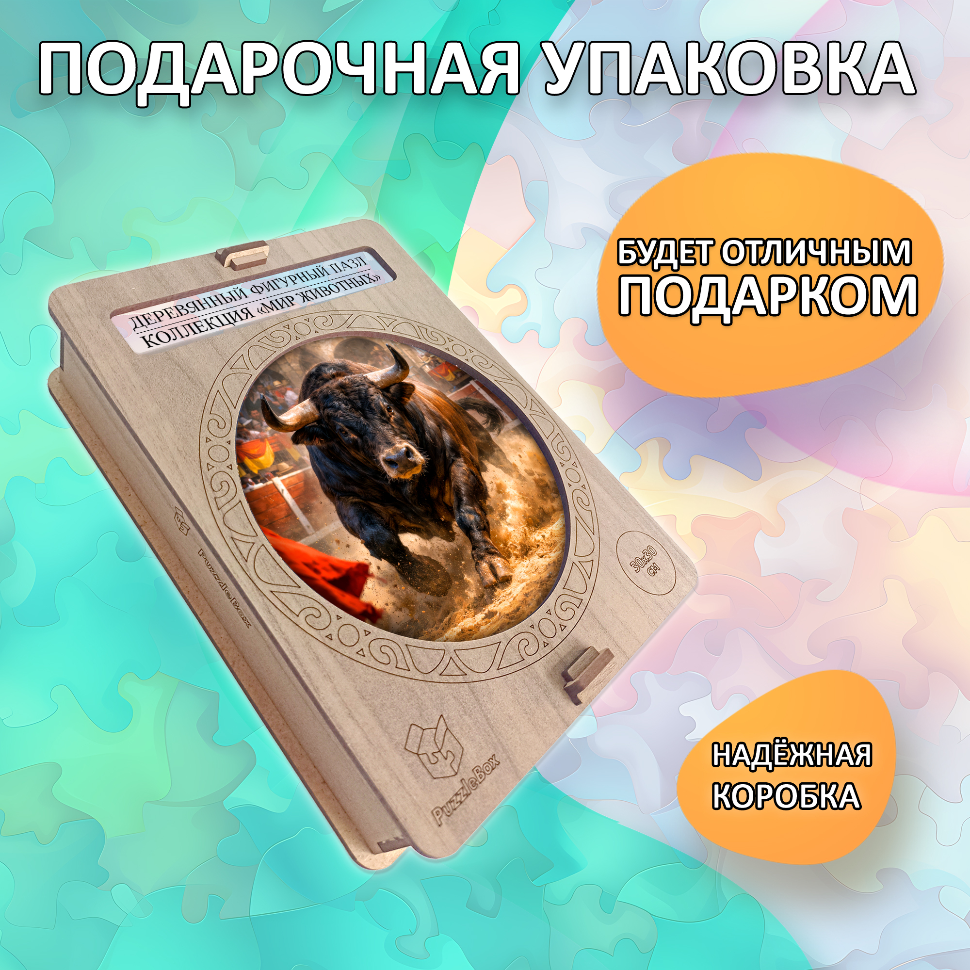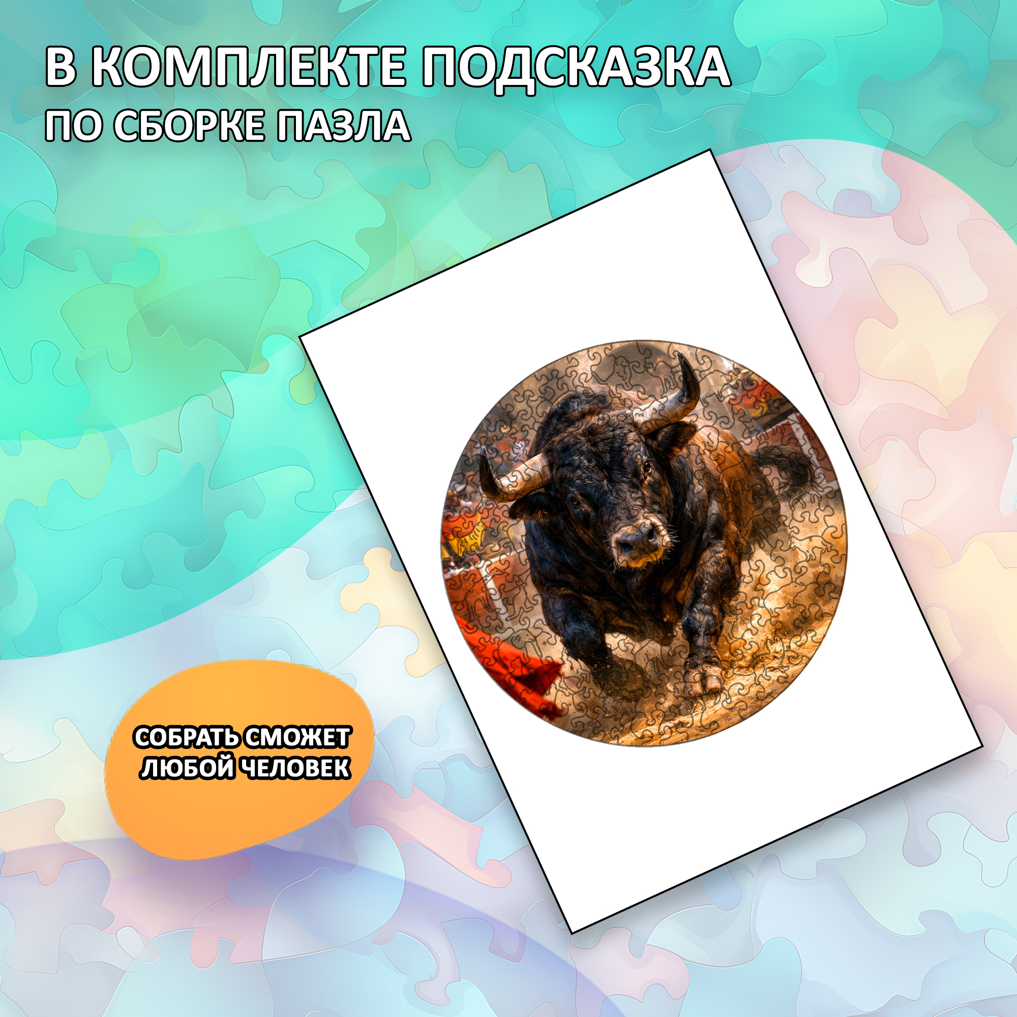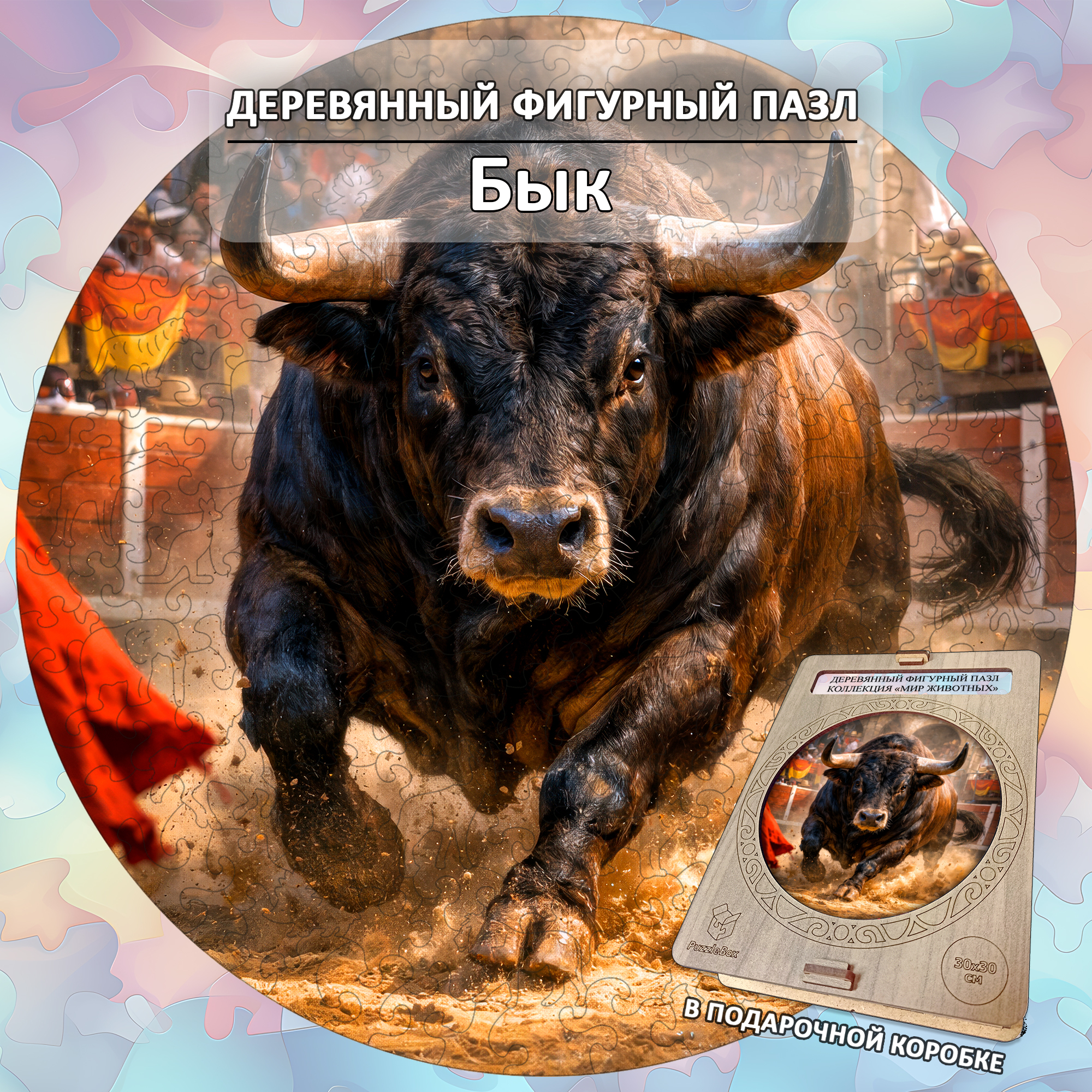 Деревянный пазл «Бык» — это энергия, сила и движение, собранные в одном круге. Мощный образ быка в момент стремительного рывка создаёт ощущение драйва и внутренней концентрации — такой сюжет выбирают те, кто ценит характер, динамику и выразительные детали. Этот пазл не просто собирают — его проживают.