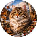Деревянный пазл с сибирской кошкой передаёт атмосферу настоящей зимы — тёплой, тихой и немного сказочной. В центре композиции — величественная сибирская кошка с густой пушистой шерстью и внимательным взглядом. За её спиной — заснеженный домик с тёплым светом в окне, сложенные поленья, старинный самовар, лыжи у берёзы и горный пейзаж. Картина наполнена деталями, которые хочется рассматривать: иней на ветках, мягкий снег, шишки и ягоды на переднем плане. Во время сборки постепенно открывается целая история — уютная зимняя сцена, где чувствуется спокойствие и тепло.