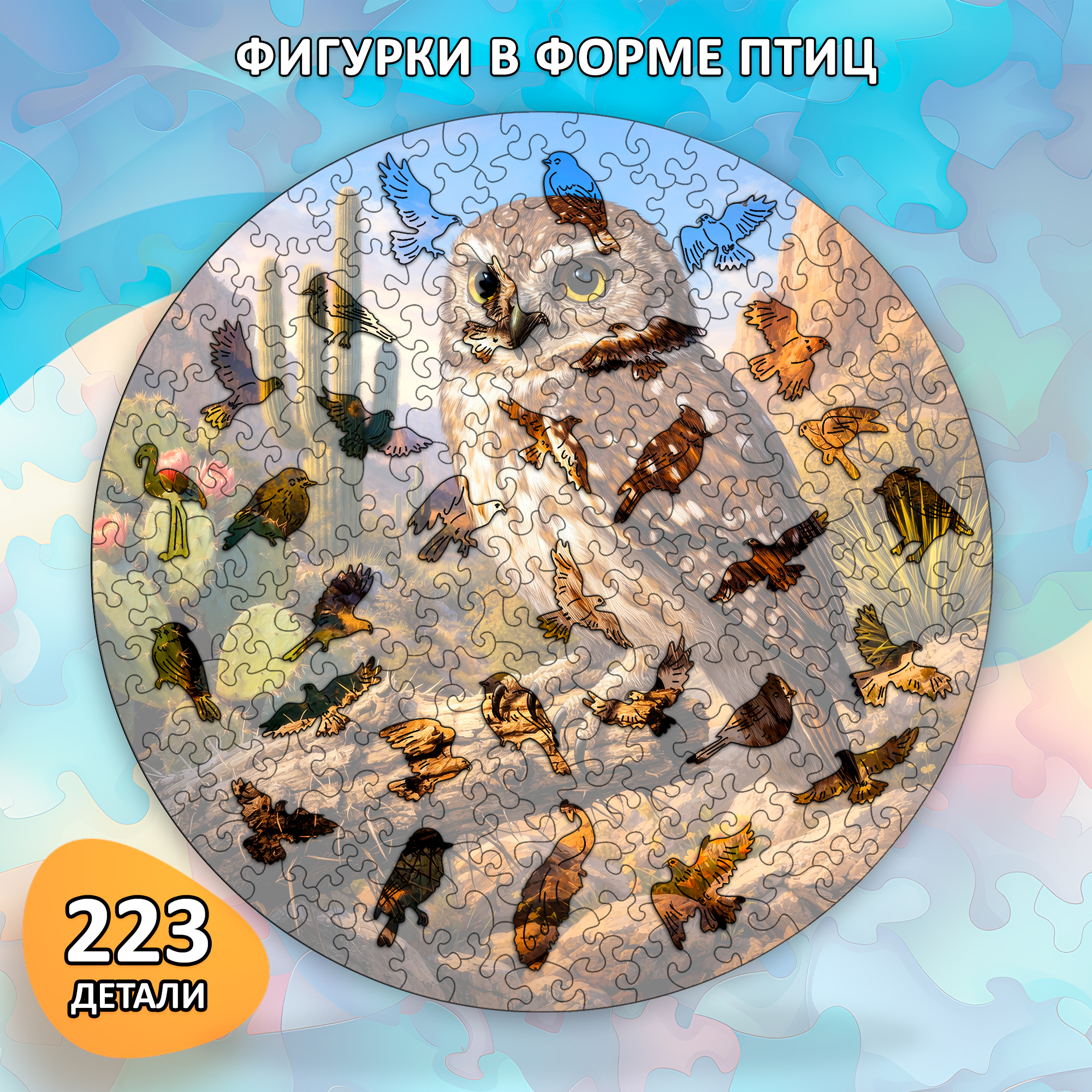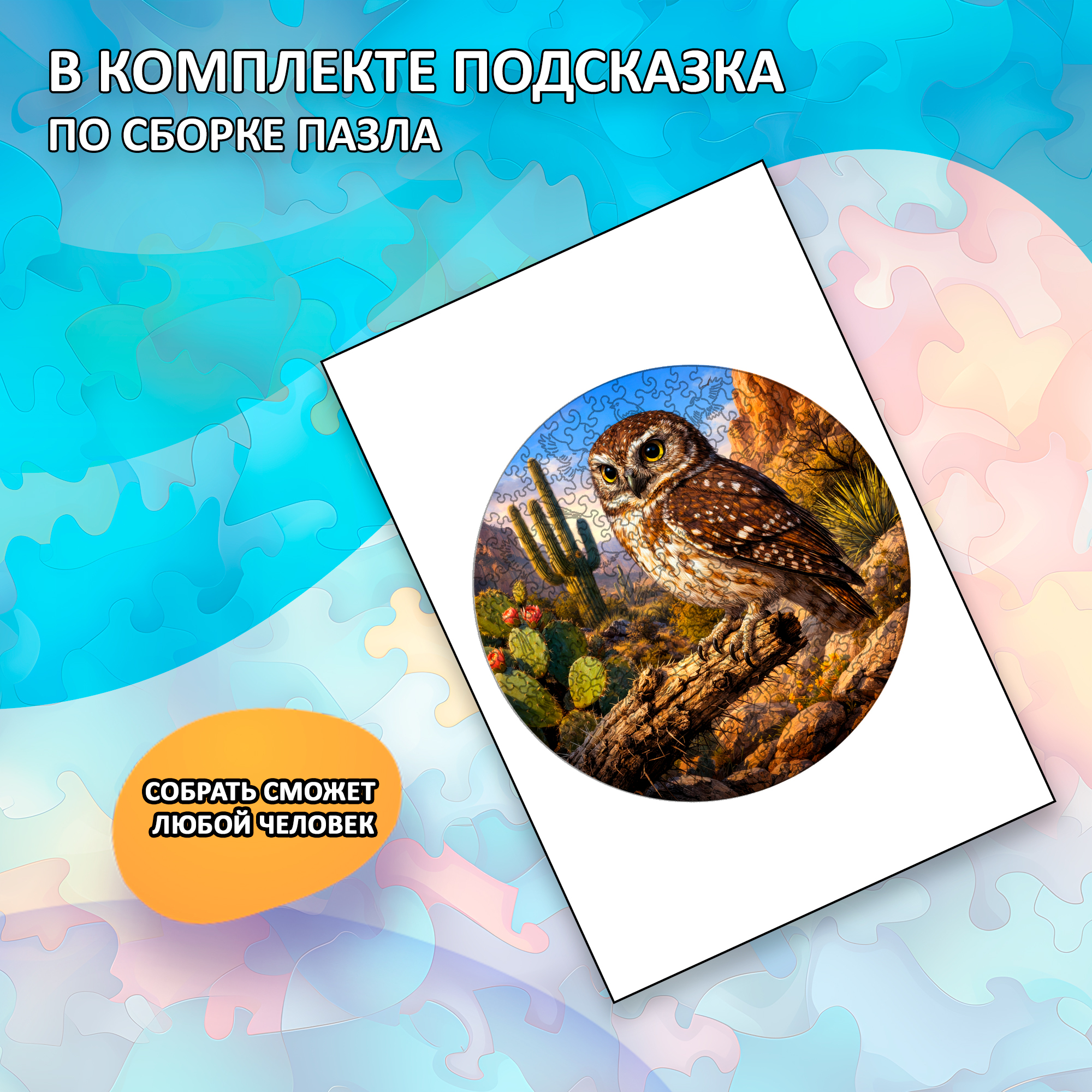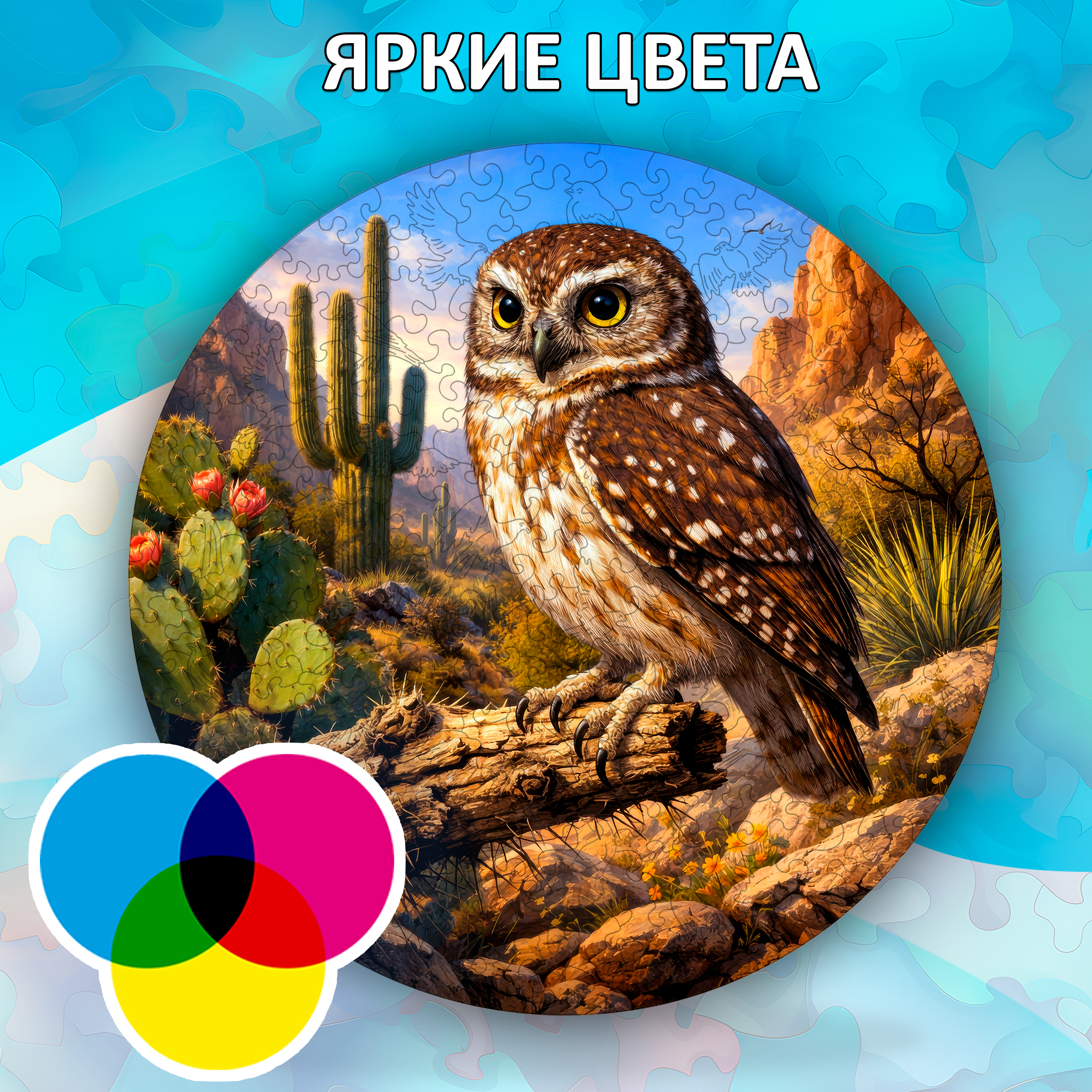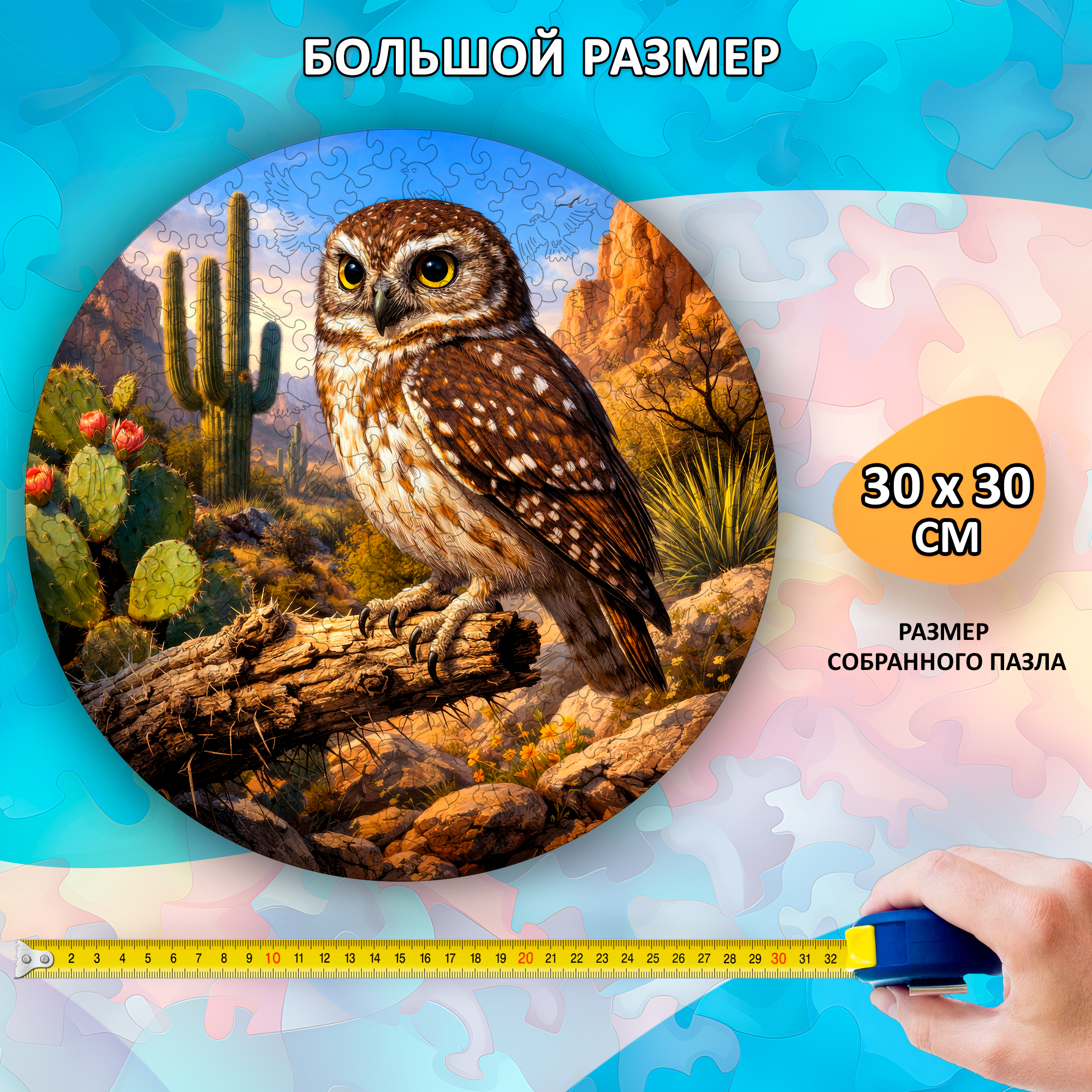 Деревянный пазл «Кактусовый сыч», 30х30см, 223 детали