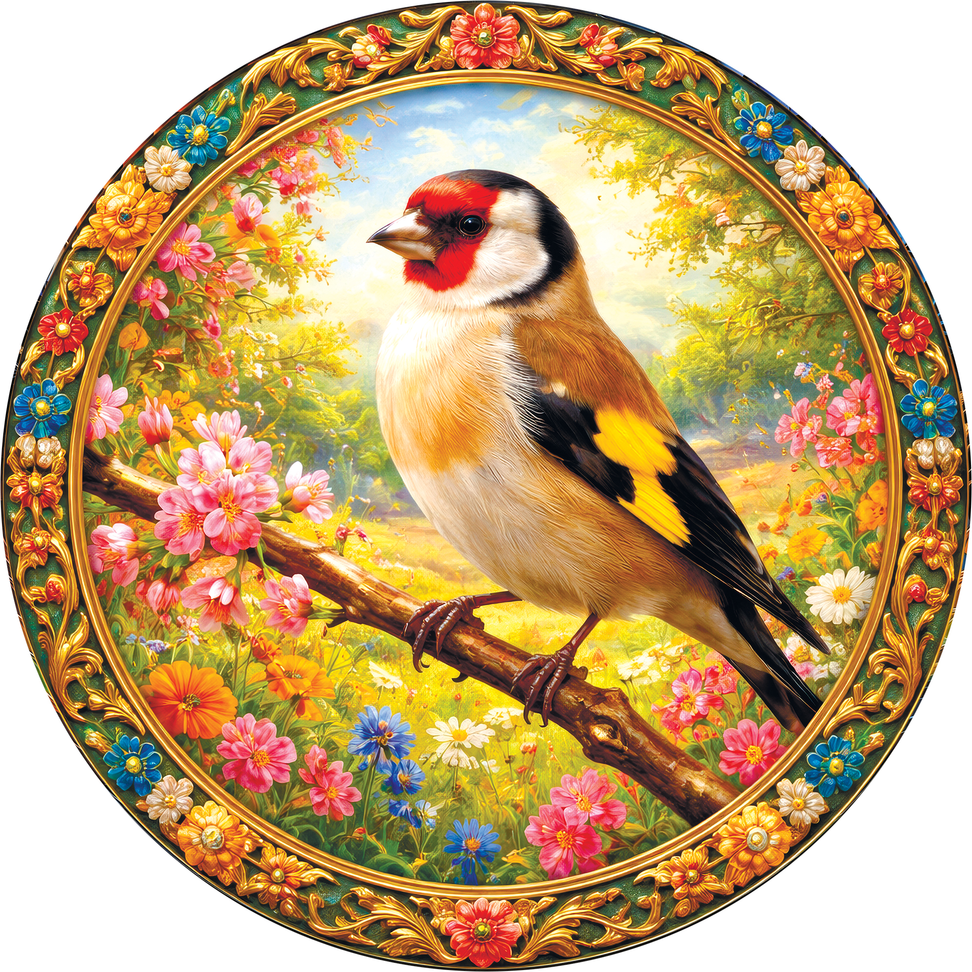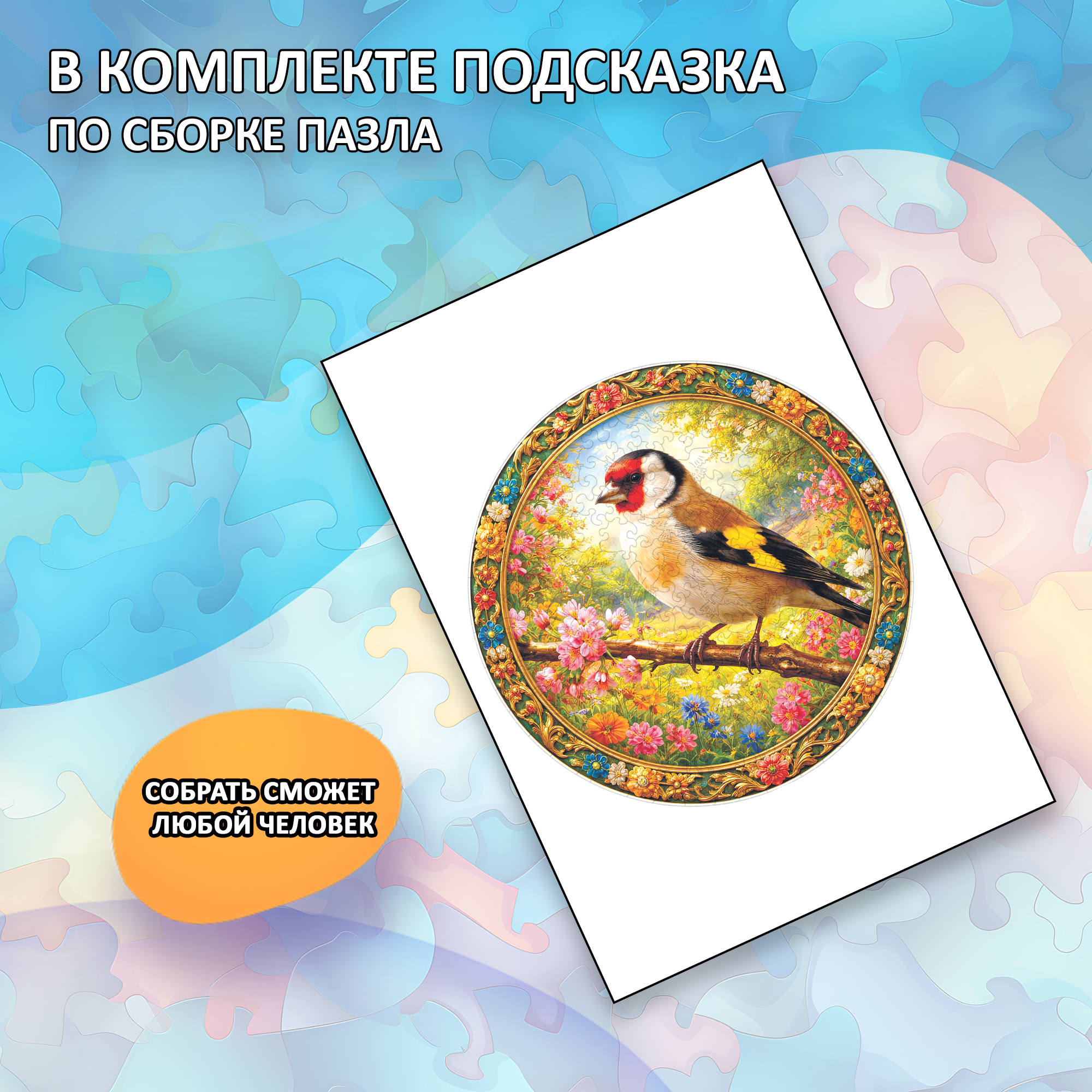 Этот деревянный пазл с изображением щегла создан для тех, кто выбирает подарки с настроением и хочет получить не просто пазл, а красивый предмет с историей. Щегол — яркая и живая птица, символ радости, свободы и любви к природе, поэтому картина сразу притягивает внимание и вызывает теплые эмоции. Иллюстрация выполнена с насыщенными цветами и проработанными деталями, благодаря чему собранный деревянный пазл выглядит как полноценная декоративная картина. Круглая форма делает изображение особенно выразительным и необычным, такой пазл хочется рассматривать снова и снова.
