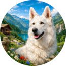 Деревянный пазл «Белая швейцарская овчарка» передаёт ощущение чистоты, силы и открытого горного пространства. Белоснежная собака сидит на фоне альпийского озера и зелёных склонов, её шерсть мягко подсвечена солнцем, а взгляд спокойный и внимательный. В этом образе чувствуется надёжность и доброжелательность — не показная мощь, а уверенное присутствие рядом с человеком. Горный домик, водопад и цветущие луга создают атмосферу свежего воздуха и свободы.