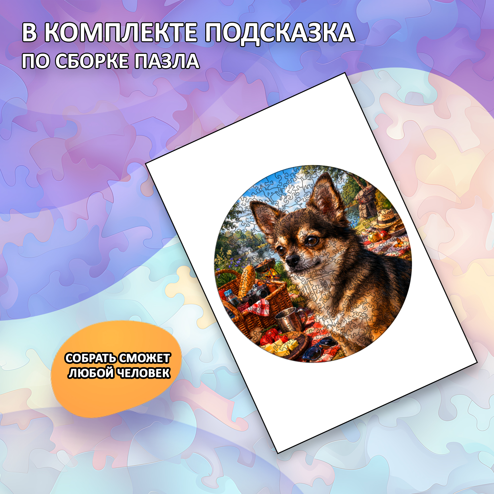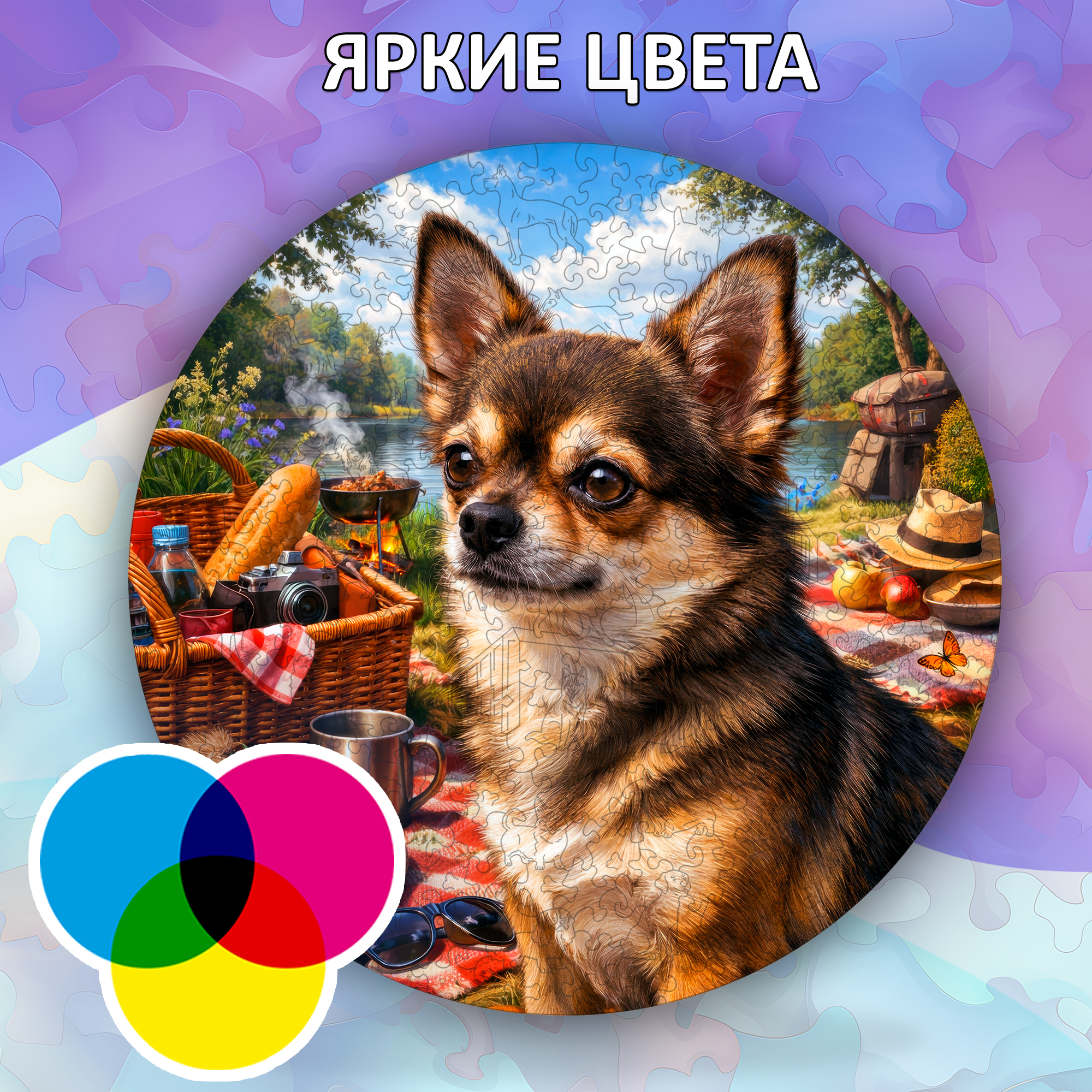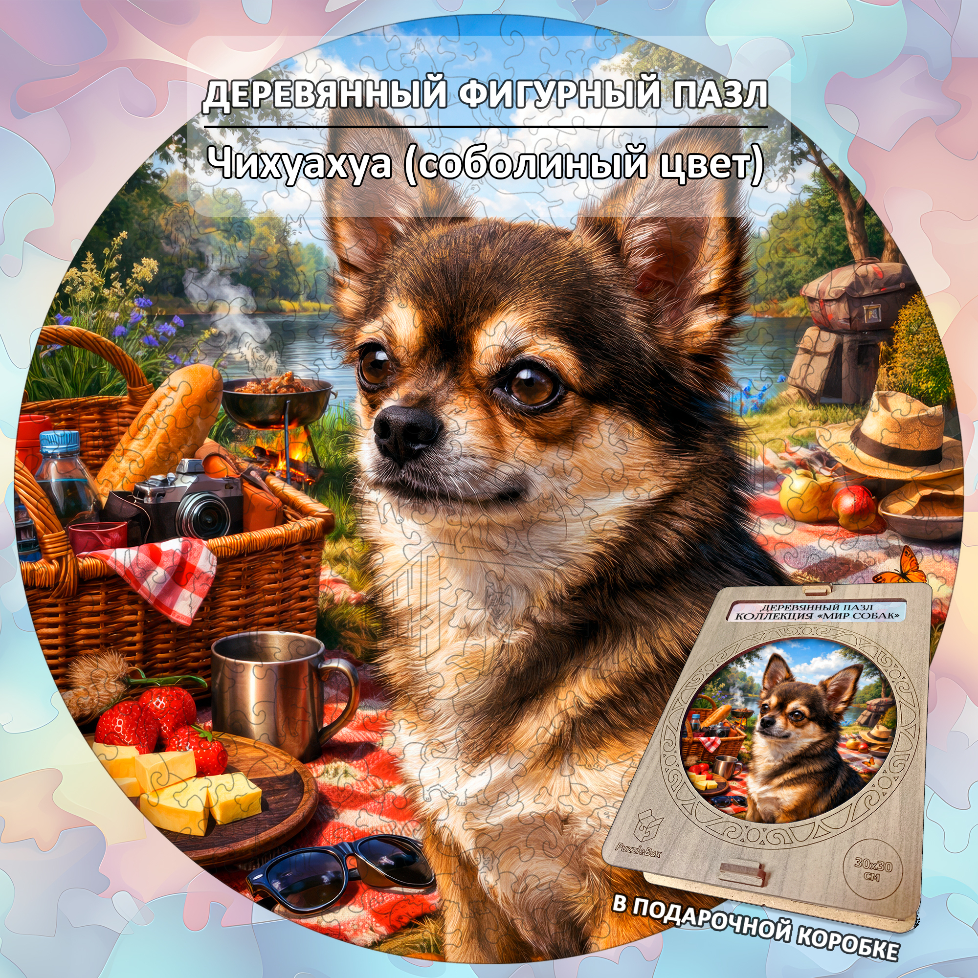 Деревянный пазл «Чихуахуа (соболиный окрас)» — маленький герой с большим характером. На изображении — внимательный, уверенный в себе чихуахуа с тёплым соболиным оттенком шерсти и живыми глазами. Эта порода известна своей преданностью, смелостью и удивительной харизмой, и именно это настроение передано в сюжете: уютный парк, солнечный день и собака, которая будто позирует для портрета.