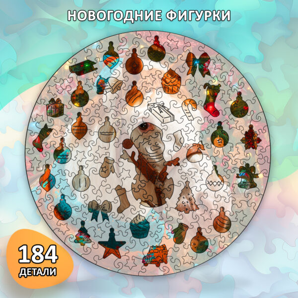 Деревянный пазл Лошадь — Символ года 2026 / 30х30см, 184 детали / Новогодний подарок / Артикул NG022