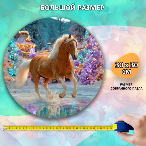 Деревянный пазл Лошадь — Символ года 2026 / 30х30см, 184 детали / Новогодний подарок / Артикул NG023